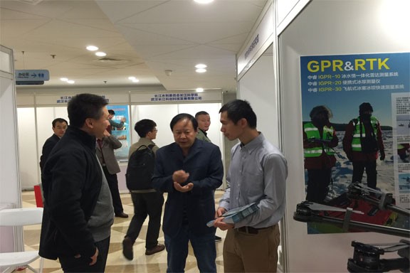 新技術(shù)成果裝備展示會(huì)場(chǎng)內(nèi),大連中睿科技發(fā)展有限公和中國(guó)水利水電科學(xué)研究院的聯(lián)合展位上,展出的冰水一體化雷達(dá)、無(wú)人機(jī)飛航測(cè)冰雷達(dá)和便攜式測(cè)冰雷達(dá)儀吸引了眾多與會(huì)代表參觀了解,詢問(wèn)設(shè)備性能和技術(shù)指標(biāo),大連中??萍及l(fā)展有限公司副總經(jīng)理、陳潔博士熱情的為與會(huì)專家和代表做了詳細(xì)介紹和說(shuō)明。