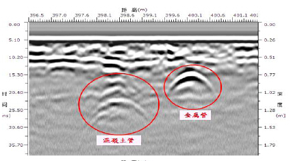 左側(cè)為混凝土管雷達(dá)圖像,右側(cè)為高亮金屬管雷達(dá)圖像