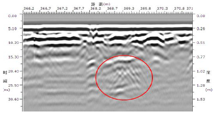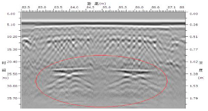 鋼筋混凝土板下方兩個(gè)砌筑管溝的雷達(dá)圖像