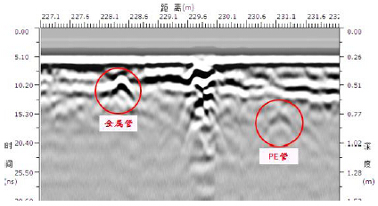 左側(cè)為高亮金屬管雷達(dá)圖像,右側(cè)為PE管雷達(dá)圖像