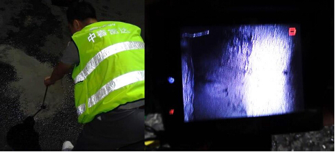對探測發(fā)現(xiàn)的一處大型空洞災害點進行釬探并采用電子內窺鏡檢查地下空洞內部情況。