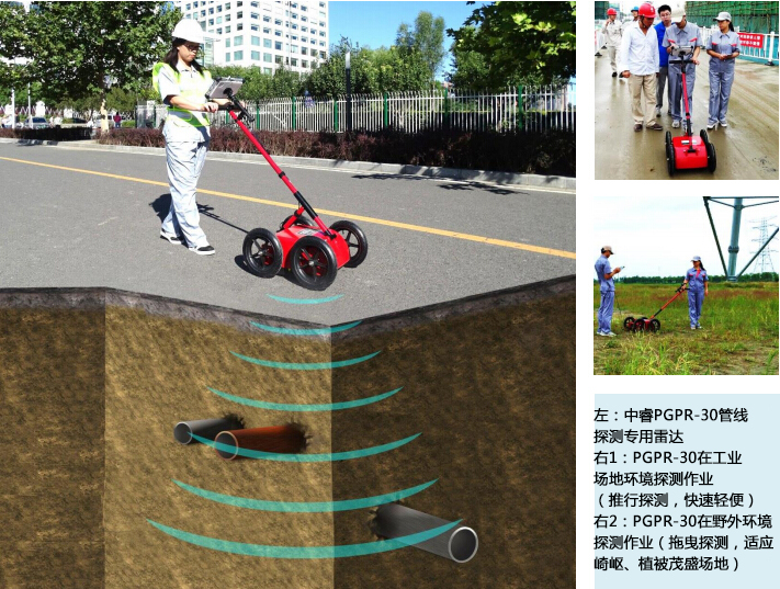 PGPR-30管線探測專用雷達(dá)是為精確探測和定位各類金屬、非金屬管線而設(shè)計(jì)的新型專用設(shè)備,由一體化主機(jī)、高性能屏蔽式天線、三防顯控終端和四輪(可切換兩輪)手推車等部件組成,便于攜帶作業(yè)、操作簡單、探測結(jié)果易于識別判讀,是目前性能先進(jìn)、使用方便的國產(chǎn)管線探測雷達(dá)??蓮V泛應(yīng)用于管線普查和詳查、工程管線定位、環(huán)保監(jiān)督等各個(gè)領(lǐng)域。